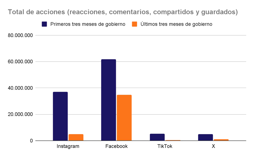 Análisis comparativo de las acciones realizadas por la comunidad en las publicaciones de las redes oficiales de Javier Milei: Primer trimestre de su presidencia vs. último trimestre (julio a septiembre de 2025)