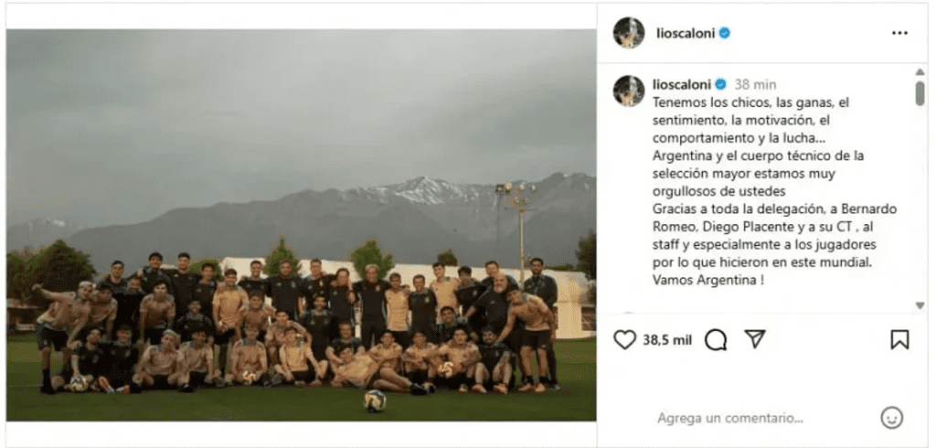 “Gracias a toda la delegación, a Bernardo Romeo, Diego Placente y a su cuerpo técnico, al staff y especialmente a los jugadores por lo que hicieron en este Mundial. ¡Vamos Argentina!” añadió quién, además de ser el entrenador de la Selección argentina campeona del mundo en Qatar 2022, conquistó el Mundial juvenil en 1997 en Malasia.