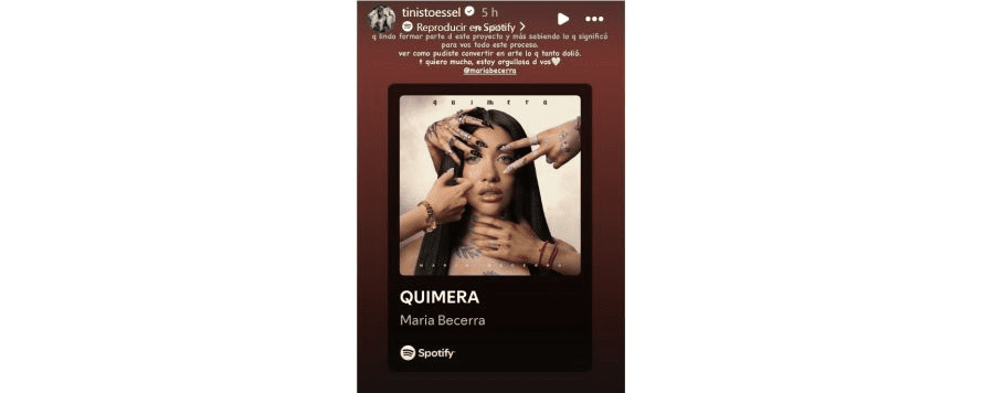 Mediante una historia en su cuenta de Instagram, manifestó: «Que lindo formar parte de este proyecto y más sabiendo todo lo que significó para vos todo este proceso», en referencia a su canción «Hasta que me enamoro».