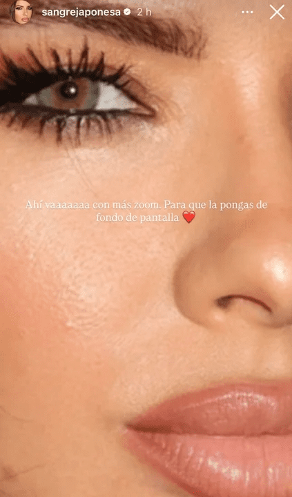 Todo comenzó cuando la actriz subió una selfie en la que se la ve con un look de maquillaje intenso, pestañas postizas y labios delineados. En el texto sobre la imagen escribió con ironía: “Ahí va con más zoom, para que la pongas de fondo de pantalla”, acompañando la frase con un primerísimo primer plano de su rostro.