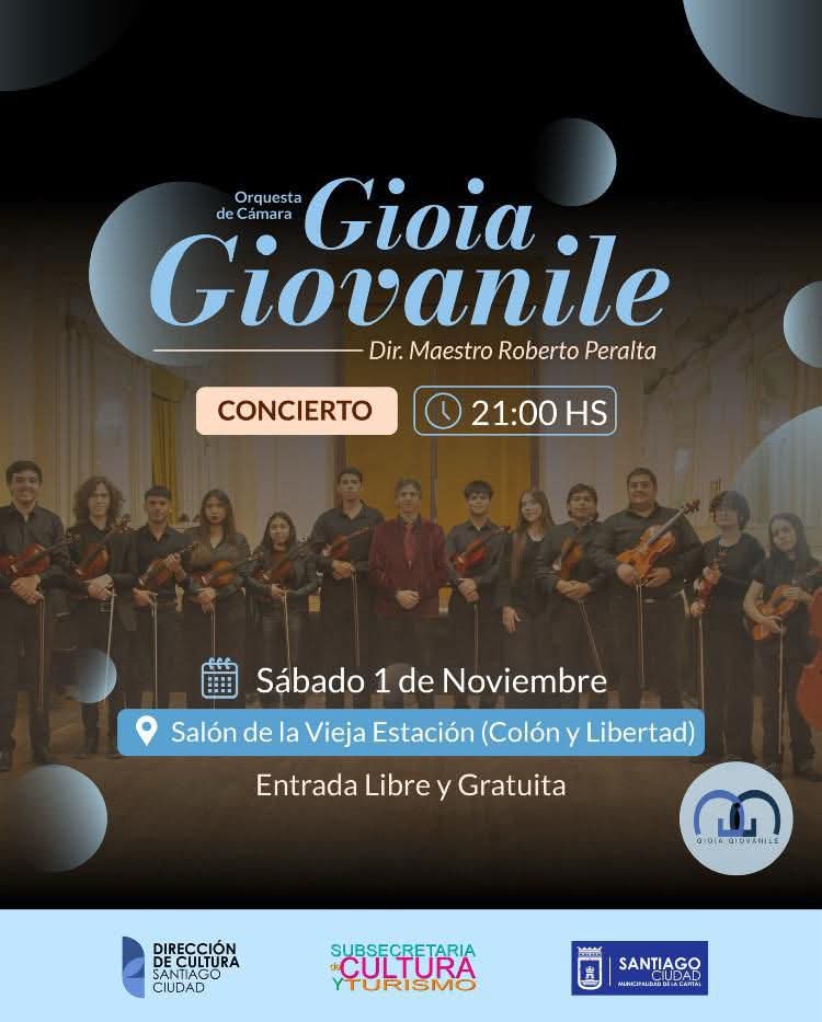 Con el acompañamiento de la Municipalidad de la Capital a través de la Dirección Cultura, la Orquesta de Cámara “Gioia Giovanile” dirigida por el maestro Roberto Peralta, ofrecerá un concierto con entrada libre y gratuita este sábado 1 de noviembre a partir de las 21 horas. El evento, se realizará en las instalaciones de la Vieja Estación (Colon y Libertad).