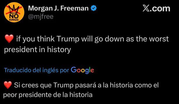La intervención de Morgan Freeman se suma así a una serie de reacciones de figuras públicas que cuestionaron el accionar del líder republicano, tal como lo hizo el escritor Stephen King, quien aseguró que la detención de Maduro no se trataba de “drogas” sino del petróleo.