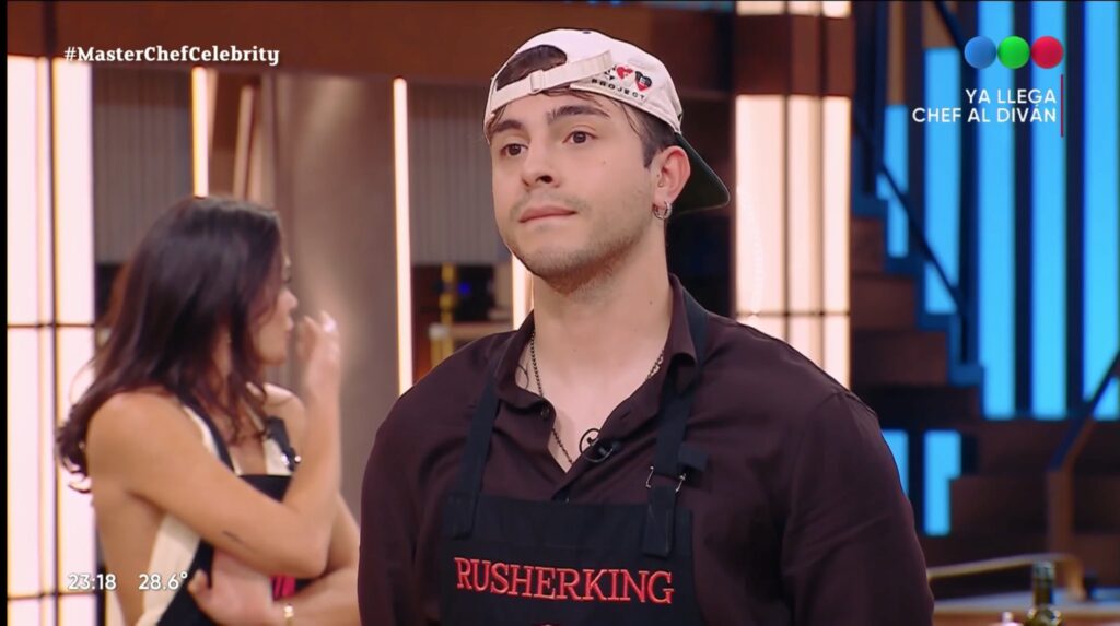 Los últimos en llegar al frente fueron Miguel Angel y el cantante. «Los dos tuvieron los peores platos», les dijo Germán. «Un plato con muchos vegetales y otro con pocos. Si fuera por nosotros ninguno de los dos seguiría pero nos tocó elegir», dijo antes de anunciar que quien abandonaba las cocinas era Rusherking, quien había ingresado al reality en la etapa del repechaje, junto a la actriz Esther Goris, que también fue eliminada la semana pasada.