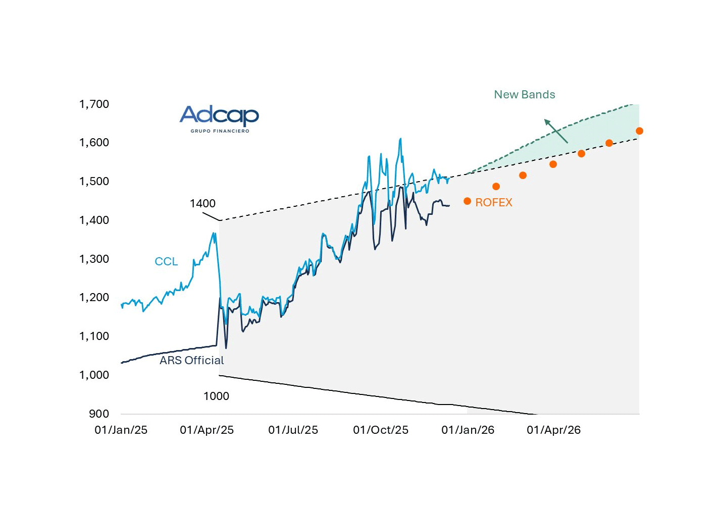 La banda inferior también acelerará su deslizamiento, pero a la baja. En enero, bajará un 2,5% y ampliará aún más las bandas. De esa forma, se intensifica la idea oficial de que el margen inferior baje “hasta volverse irrelevante”.