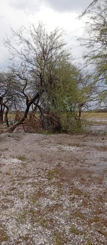 Sin embargo, la situación fue dramáticamente diferente en varios lotes rurales vecinos, incluyendo el 4, 5, 8, 41 y 42. Estas áreas sufrieron una abundante caída de granizo, con acumulaciones visibles en caminos, patios y predios productivos.