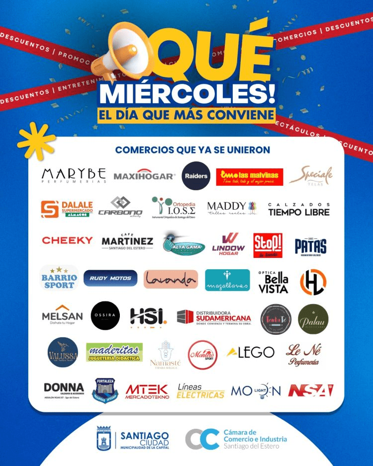 Hoy comienza ¡Que Miércoles!, una iniciativa impulsada por la Cámara de Comercio e Industria de Santiago del Estero, con el apoyo de la Municipalidad de la Capital, que busca dinamizar la economía local y estimular el consumo.