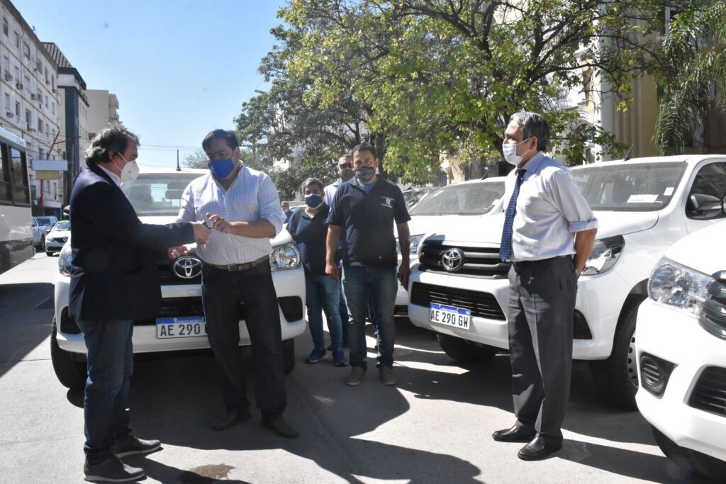 El ministro de Desarrollo Social de la provincia, Dr. Ángel Niccolai procedió a la entrega de cuatro camionetas Toyota Hilux 4×4 0km para la Subsecretaría de Defensa Civil de la provincia.