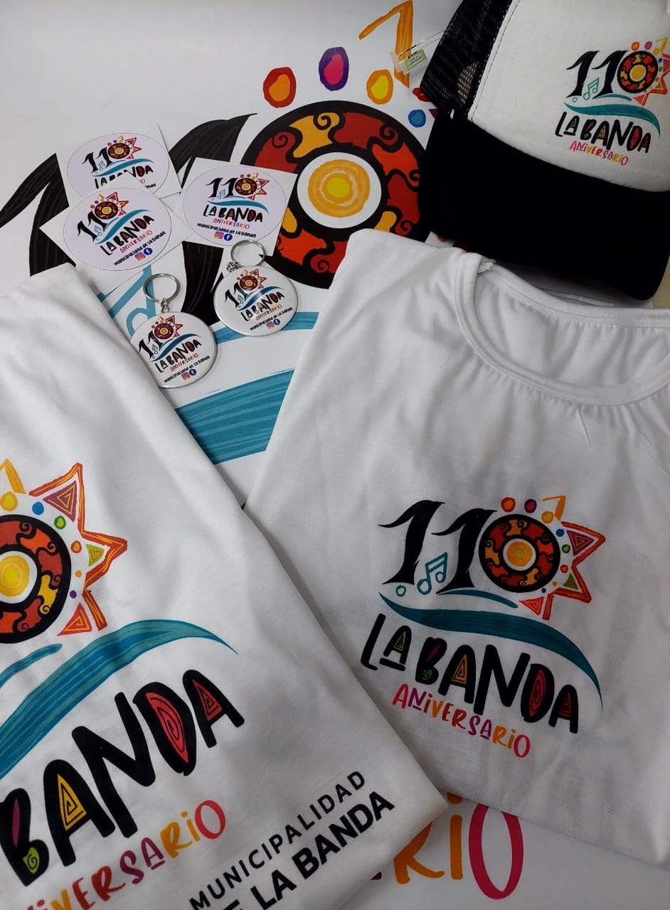 El merchandising consta en remeras, gorras y llaveros con un diseño original del logo del aniversario ejecutado por el área de comunicación municipal.
