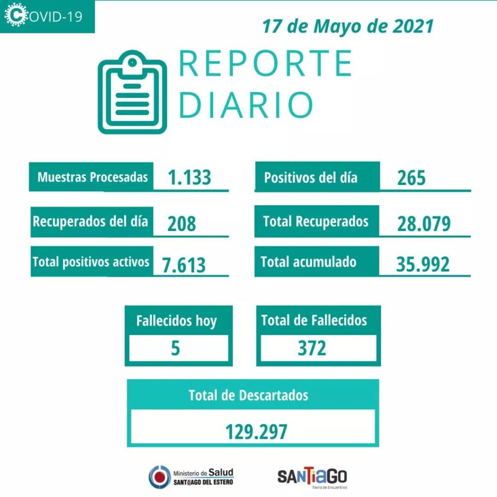 📍 Se confirmaron doscientos sesenta y cinco (265) casos, Capital y Banda (131) e interior de la provincia (134).