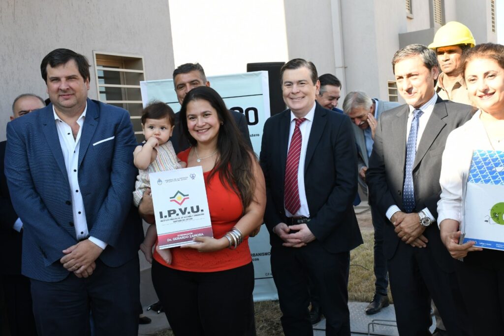 El gobernador Gerardo Zamora encabezó este martes por la mañana la inauguración de un complejo habitacional compuesto por 61 dúplex en el barrio Juan Díaz de Solís, ubicado en el suroeste de la ciudad Capital, con los cuales el Instituto Provincial de Vivienda y Urbanismo alcanzó las 2.000 viviendas entregadas en lo que va de este año, que cerrará con más de 2.200 hasta finales de diciembre.