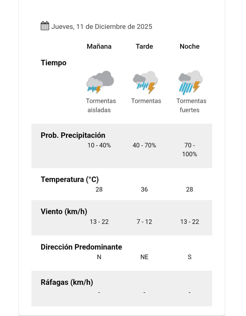 Uno de los principales riesgos reside en las ráfagas de viento, que se estima podrían alcanzar y superar puntualmente los 90 km/h, generando posibles daños en tendidos eléctricos y estructuras.