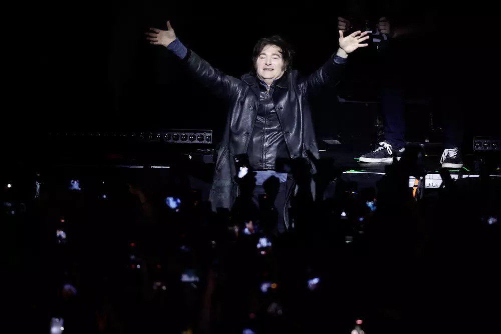 Cuando entra Milei al escenario, se ven caras muy pálidas, caras desencajadas y caras extasiadas y enojadas. Se escuchan gritos de libertad, gritos contra la casta y gritos en general. Entonces aparece la “Banda Presidencial”. Alberto “Bertie” Benegas Lynch en batería, Joaquín Benegas Lynch en guitarra, Marcelo Duclós en bajo, Fernando Mezzina en teclados y Hernán Scarfó también en guitarra, Lilia Lemoine en coros y Javier Milei en voz.