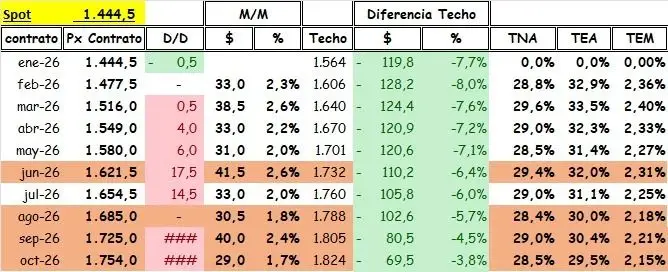 Con las tasas que se operaban el miércoles en el mercado porteño, por ejemplo una Lecap al 29 de mayo rendía en el mercado secundario 2,77% de Tasa Efectiva Mensual, contra una tasa de cobertura de 2,27% del mercado de futuro, permitía una rentabilidad de 0,5% mensual en dólares sin riesgo.