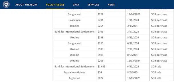 El Tesoro de los Estados Unidos confirmó que transfirió Derechos Especiales de Giro (DEG) por un monto de U$S872 millones a la administración de Javier Milei, en el marco del acuerdo de rescate financiero para la Argentina impulsado por Donald Trump.