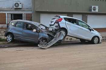 Según cifras oficiales hay más de mil evacuadosLas fuertes corrientes provocadas por el desborde de los arroyos se llevó autos que terminaron apilados encima de otros